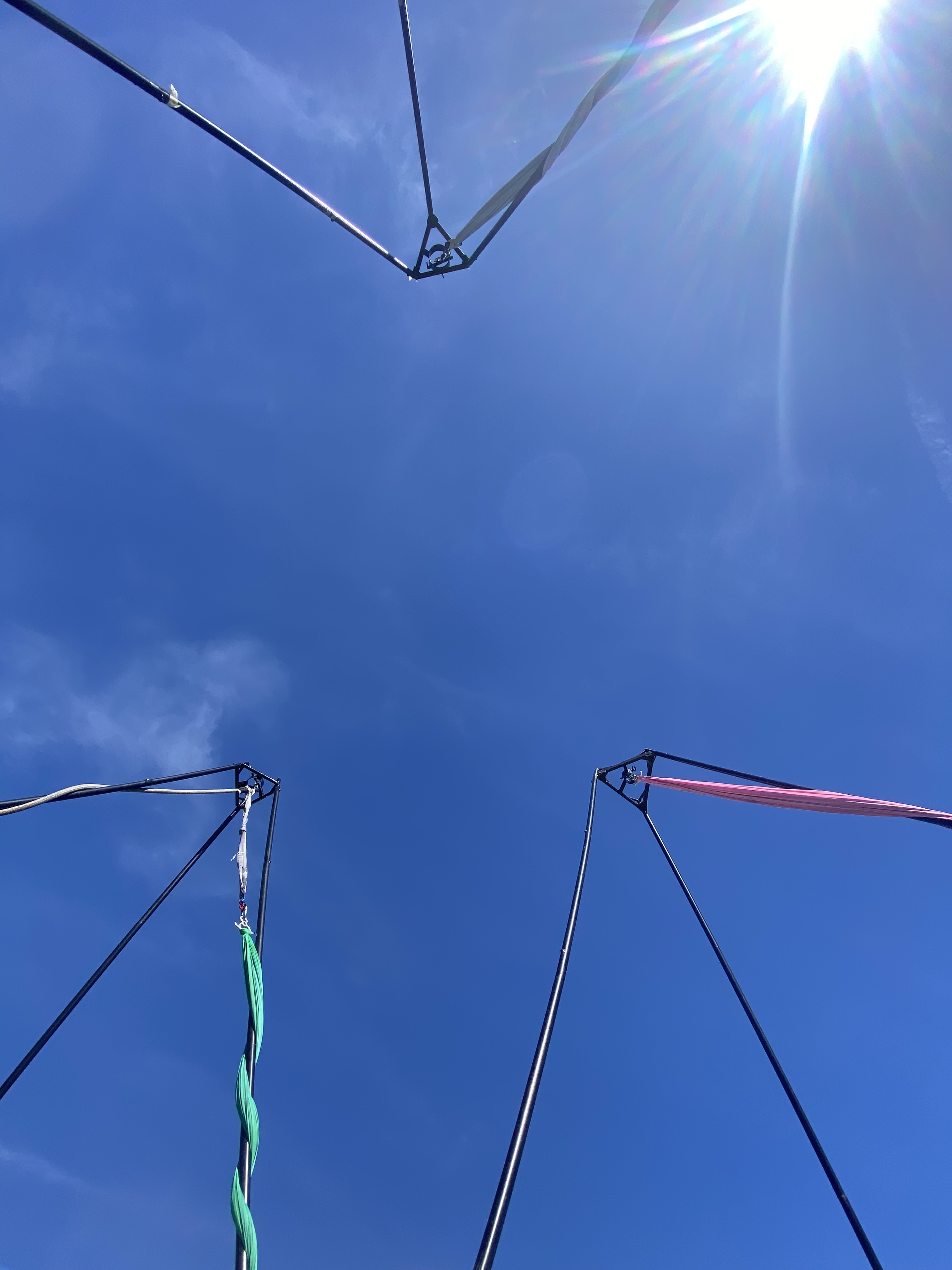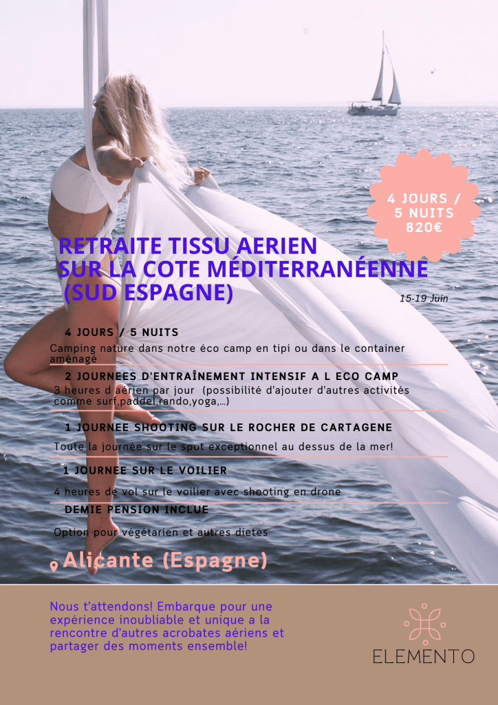 ¡Volar nunca fue tan fácil! En el campo elemento podrás disfrutar de las actividades de telas aérea, en telas, columpio o en aro al aire libre gracias a 4 maravillosas estructuras . Estas actividades mezclan las diferentes filosofías del yoga y el aéreo.